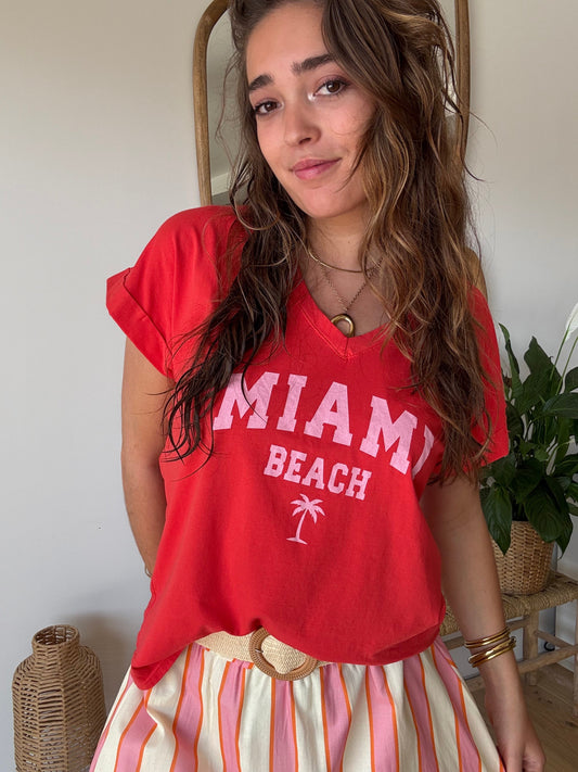 Tee shirt manches courtes Miami beach 🌞🌴rouge