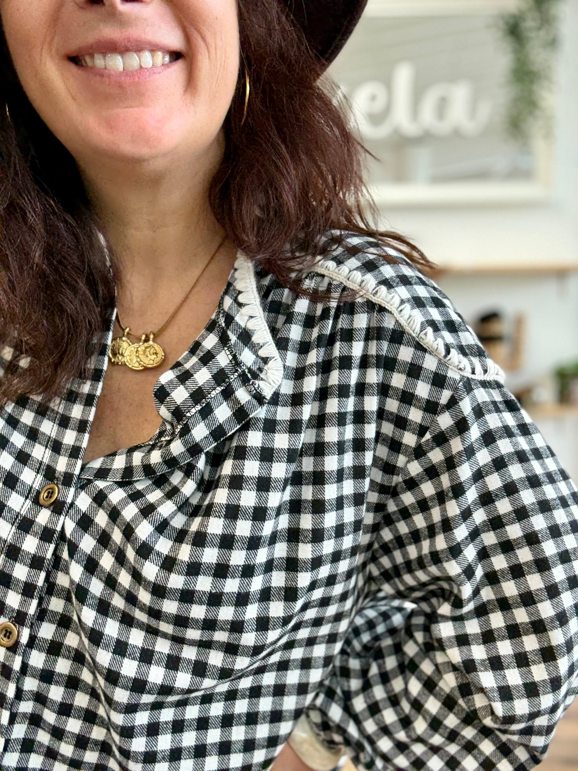 Un intemporel revisité ✨ La chemise à carreaux vichy fait son grand retour avec sa coupe fluide et ses détails discrets sur les épaules. Facile à porter, elle s’adapte à toutes vos envies, du look casual au style plus affirmé.