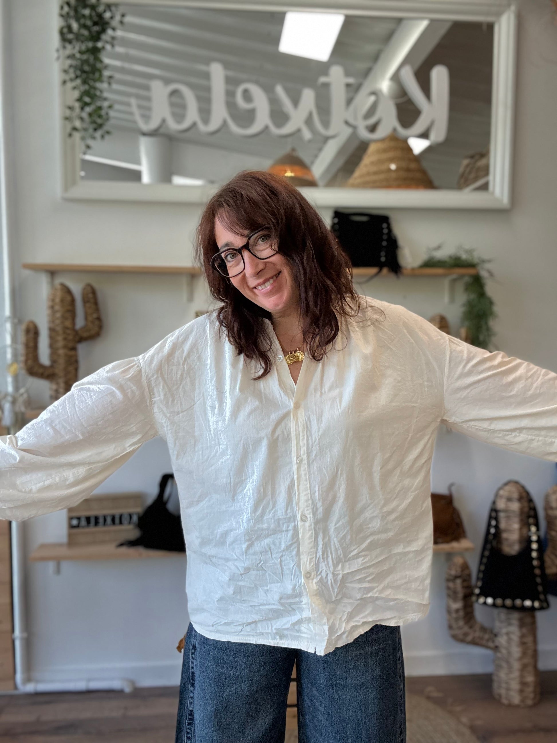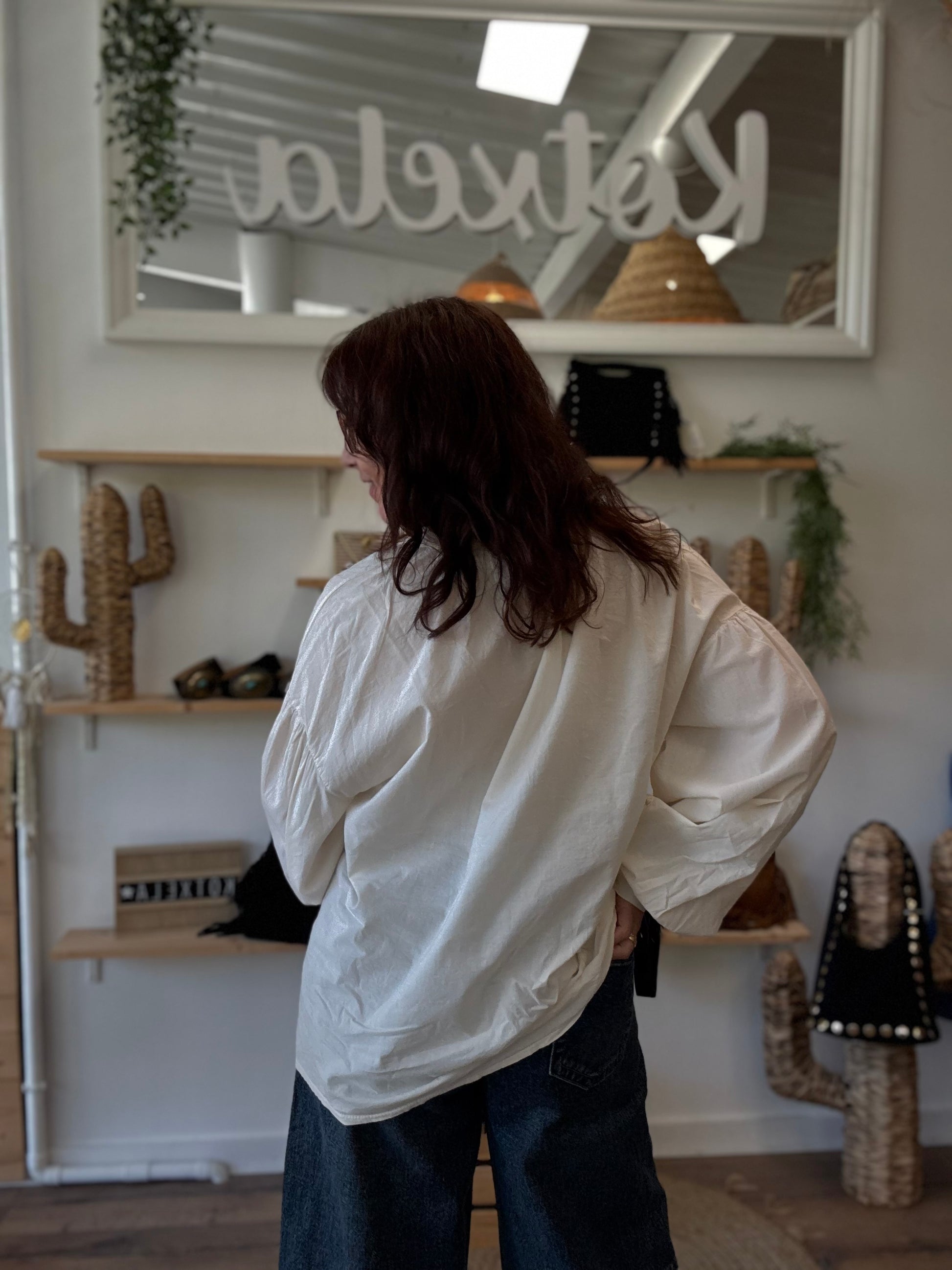 Avec sa coupe fluide, ses manches légèrement bouffantes et sa matière 100% coton, elle allie confort et élégance naturelle.