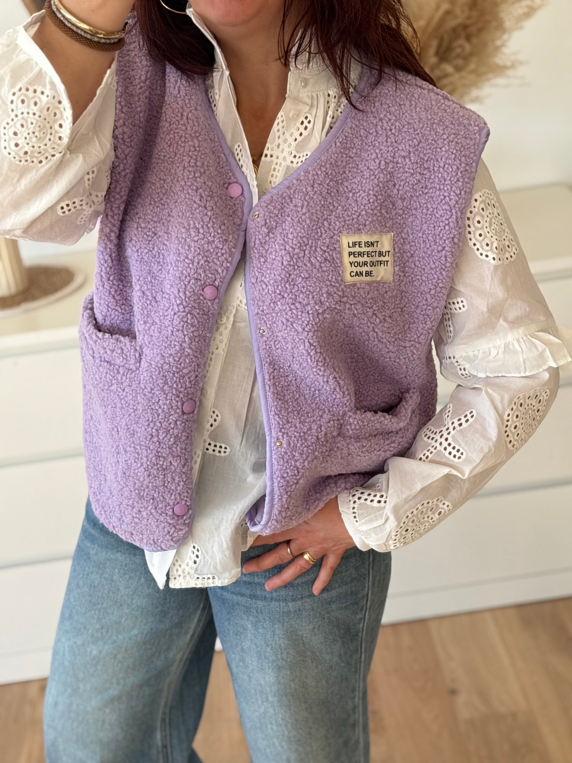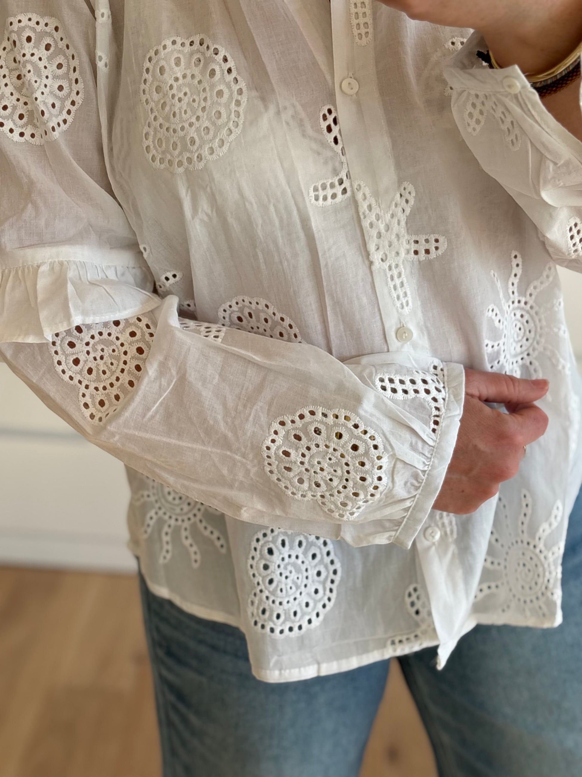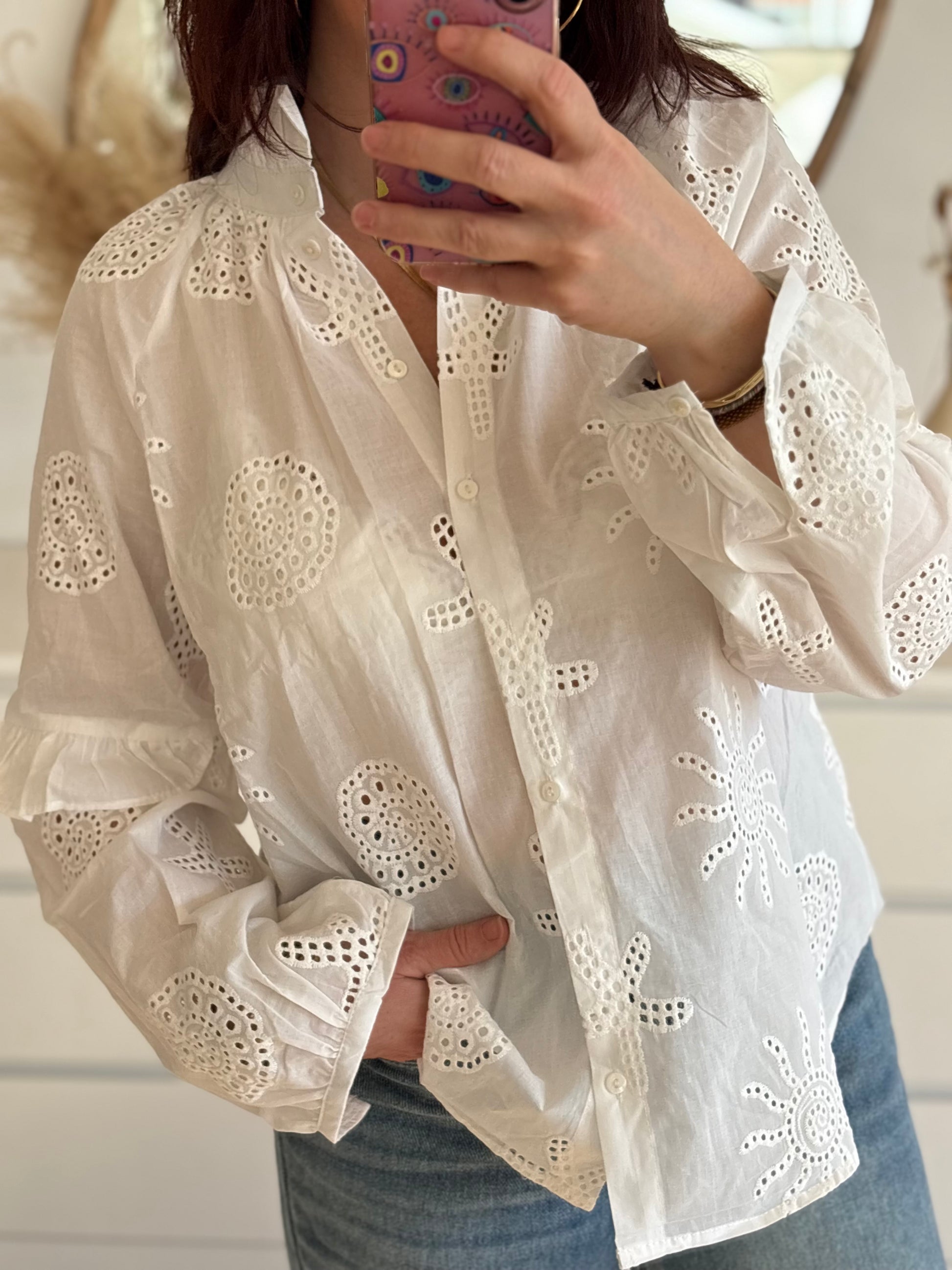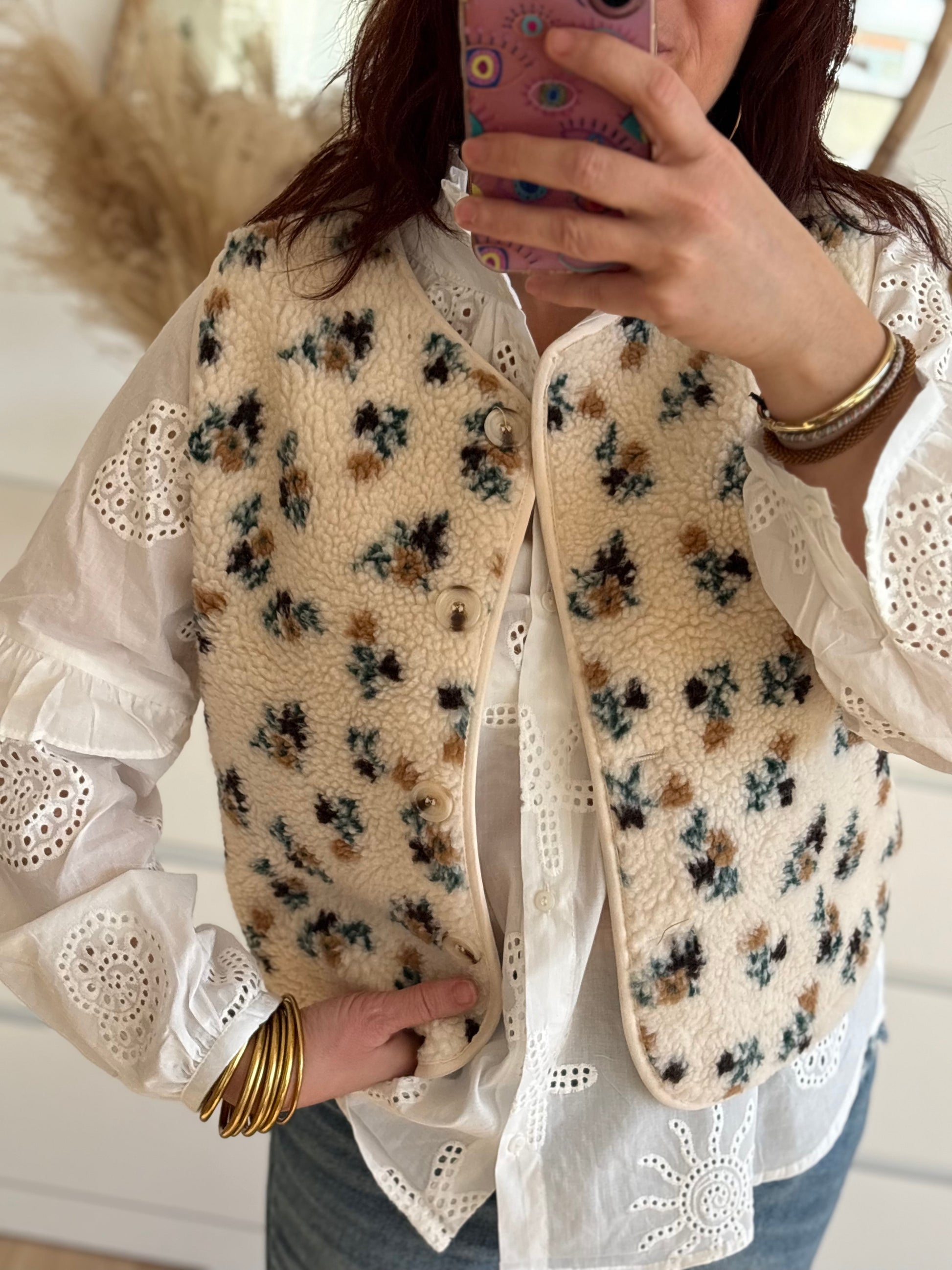 À porter avec un jean clair ou brut pour un look bohème chic effortless. On l’adore aussi sous une veste sans manches teddy (unie ou imprimée) pour réchauffer la silhouette tout en laissant apparaître les jolis détails. Parfait avec des bijoux dorés pour accentuer l’esprit solaire ✨