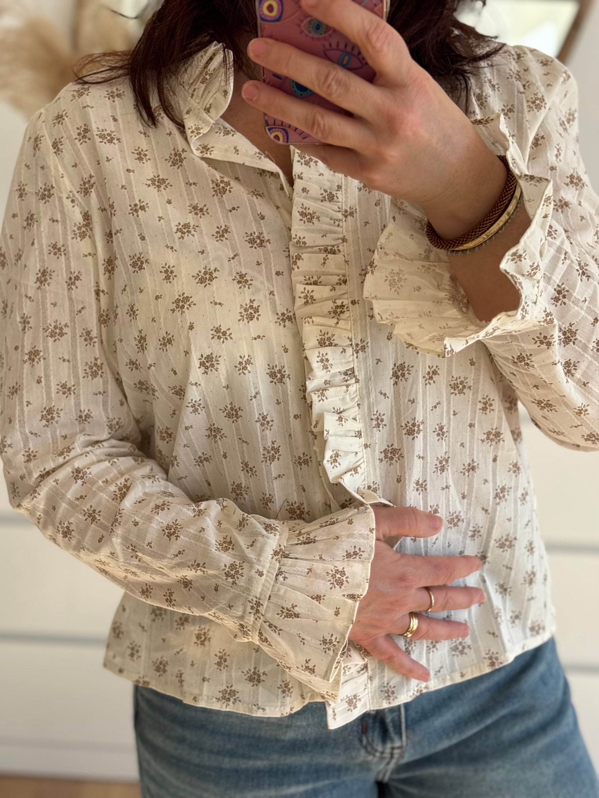 Un chemisier délicatement bohème, à l’élégance naturelle et aux détails subtils qui font toute la différence. Une pièce facile à vivre, pleine de charme, qui traverse les saisons sans se démoder.