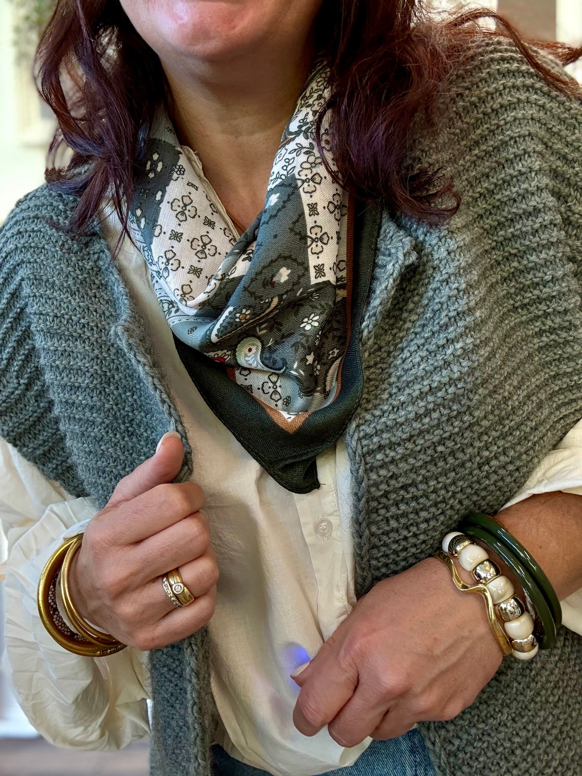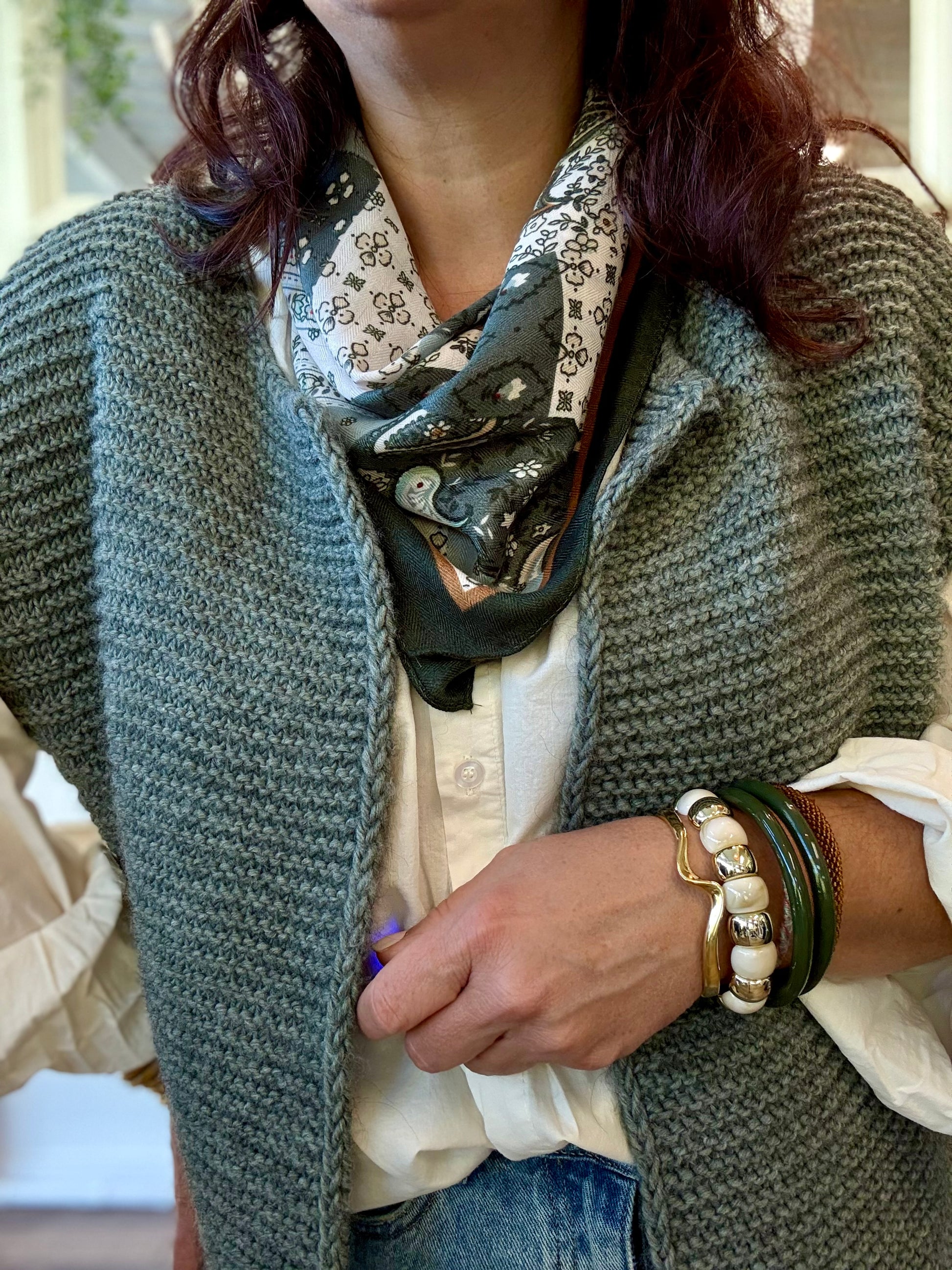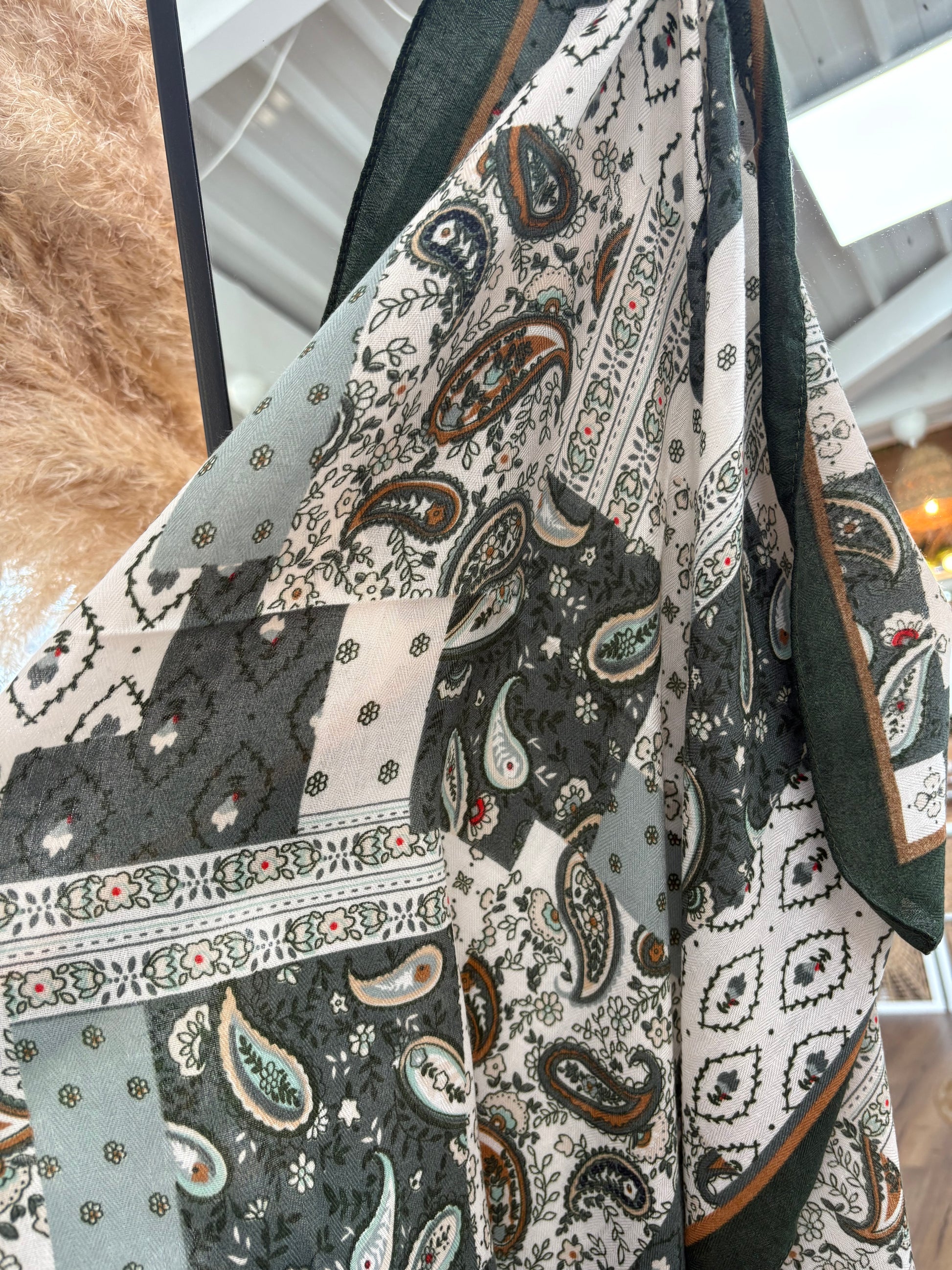 • Imprimé cachemire kaki, vert sauge et écru