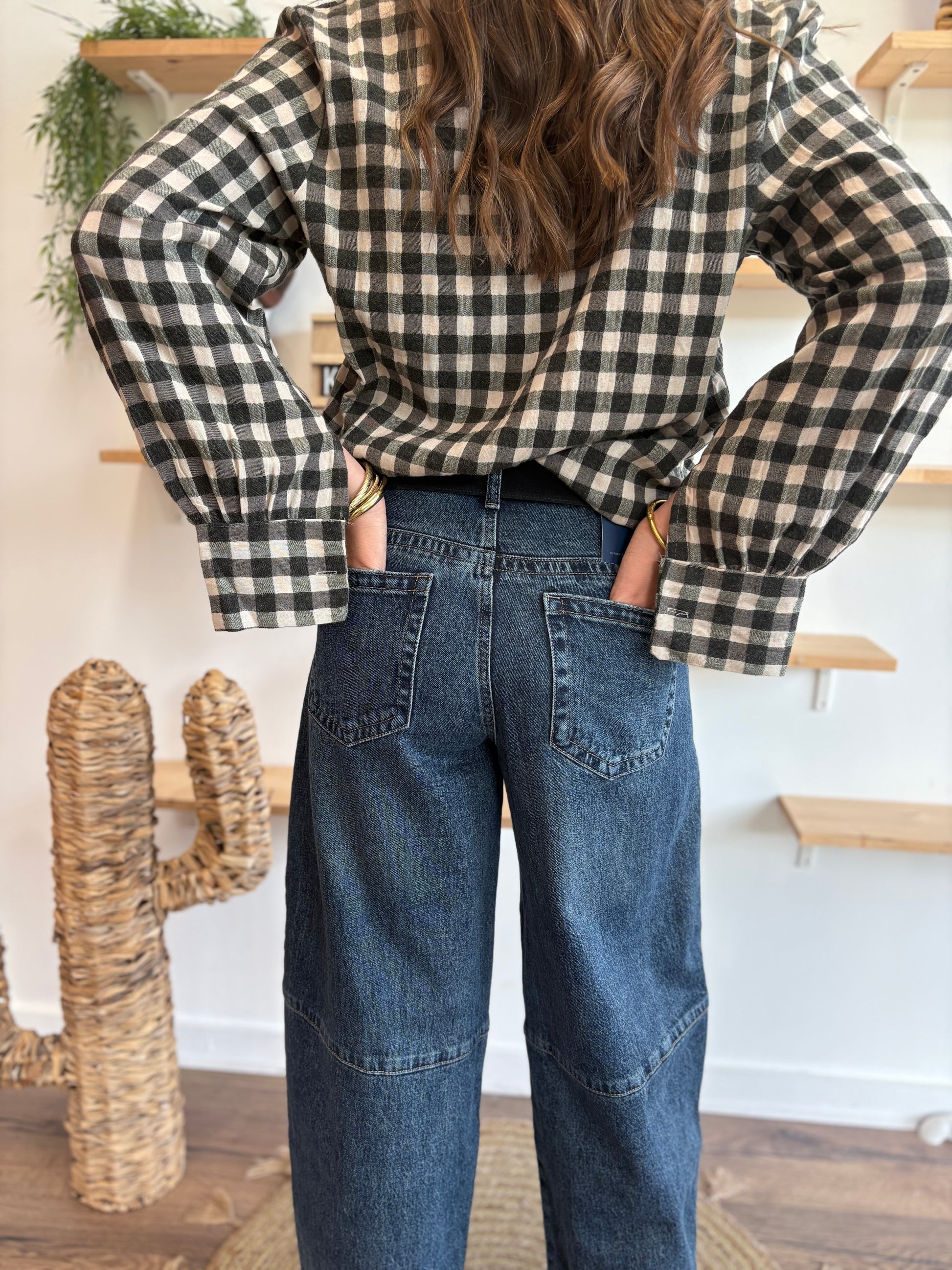 Le jean barrel qui va devenir ton allié de saison 🤠! Avec sa coupe moderne, confortable et stylée, il donne une allure casual-chic et s’associe aussi bien à tes boots cowgirl qu’à une paire de baskets.