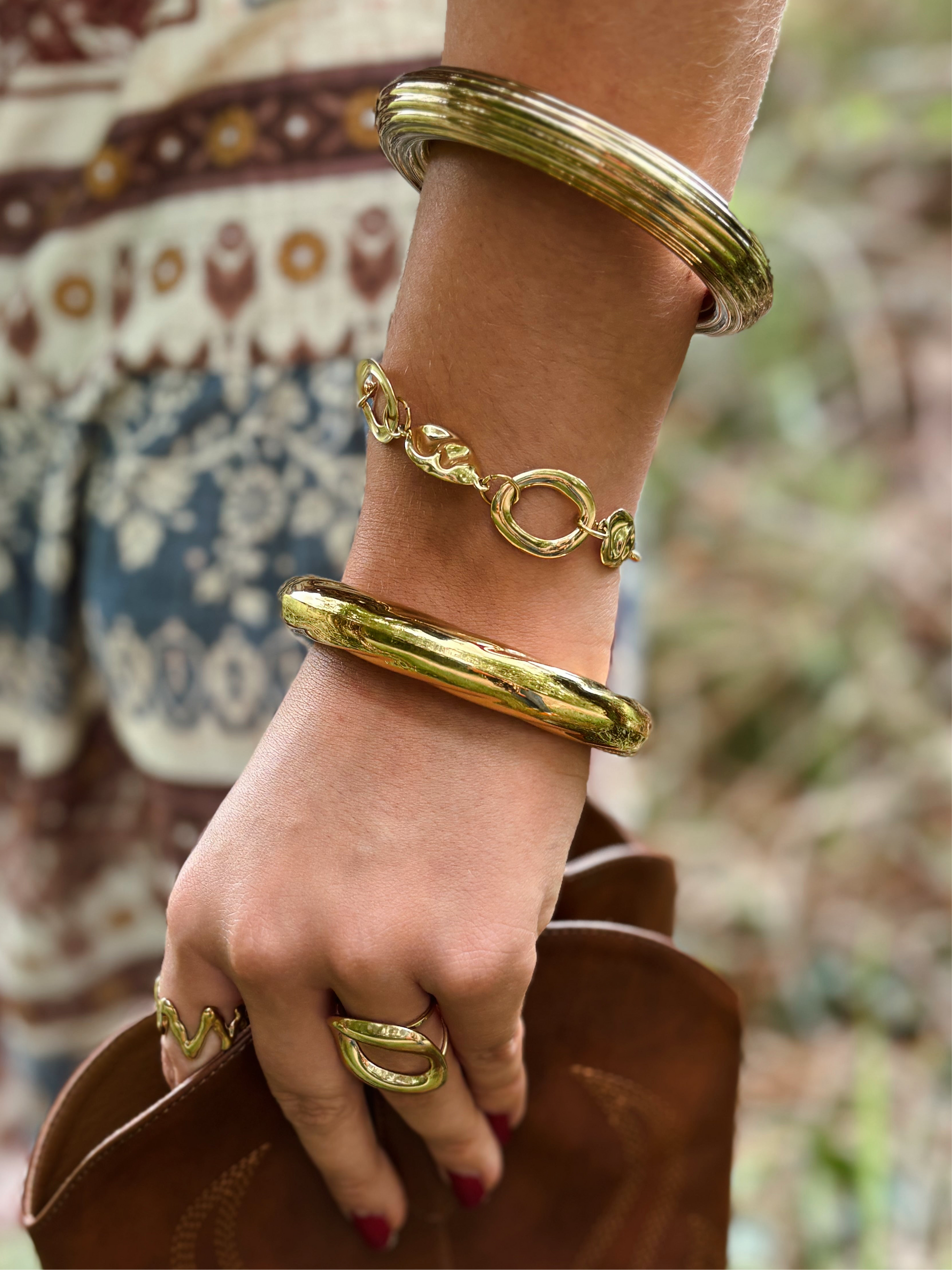 Sublimez votre poignet avec cette collection de joncs dorés en acier inoxydable, élégants et intemporels. Résistants à l’eau et à l’oxydation, ils conservent leur éclat au quotidien sans ternir. Leur design raffiné s’adapte à toutes vos tenues, du casual au chic.