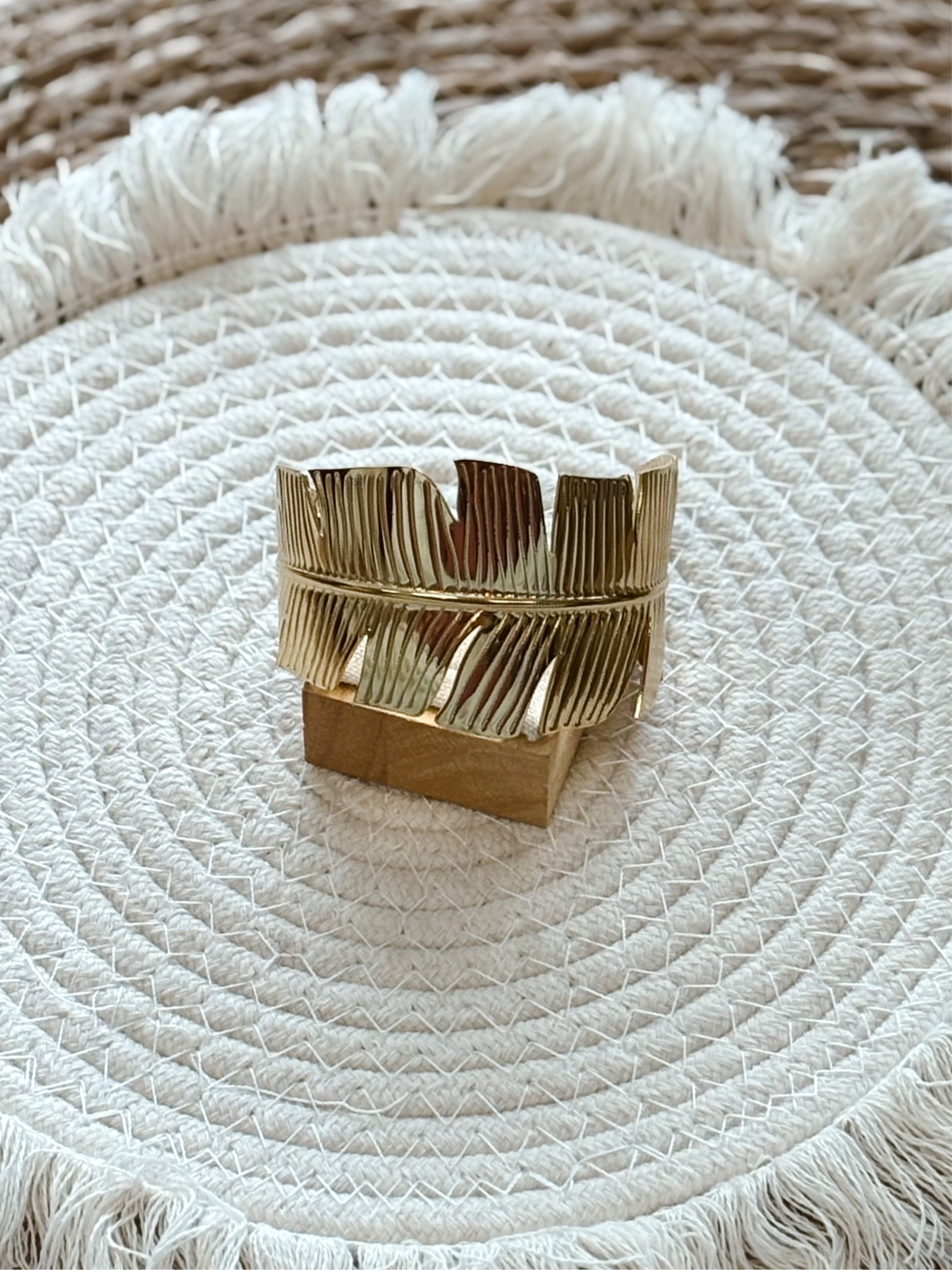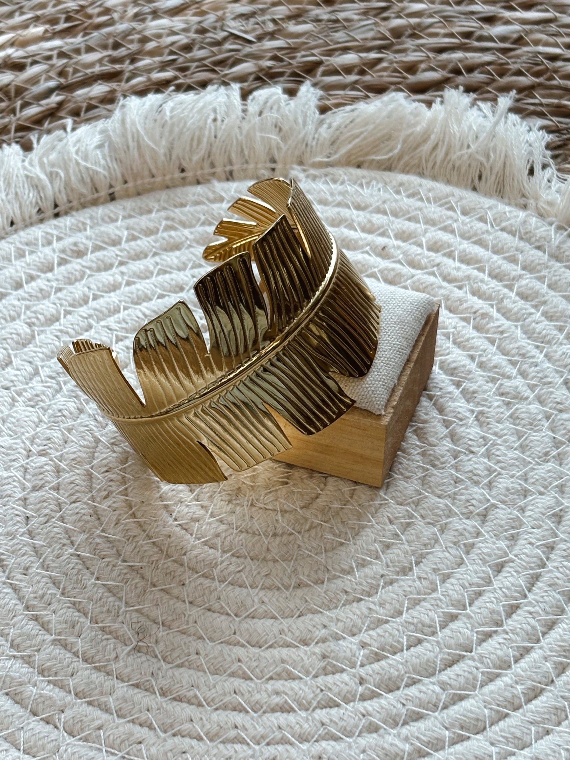 Sublimez votre poignet avec cette manchette dorée au design raffiné en forme de feuille. Une pièce forte qui allie délicatesse et caractère, parfaite pour ajouter une touche bohème chic ou sophistiquée à vos tenues.