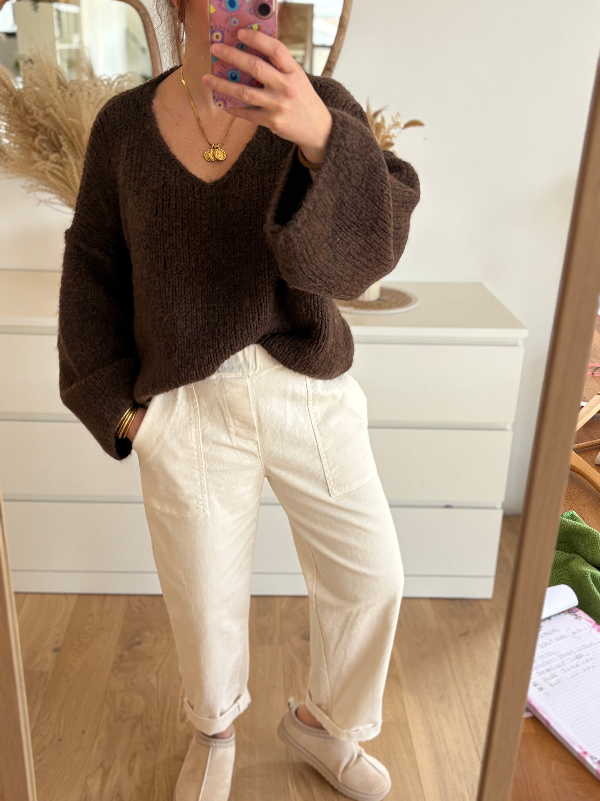 À porter avec un pull cocooning rentré légèrement sur le devant ou une blouse fluide pour un look casual chic. Parfait aussi avec une paire de baskets pour un style cool, ou des bottines pour une allure plus citadine.