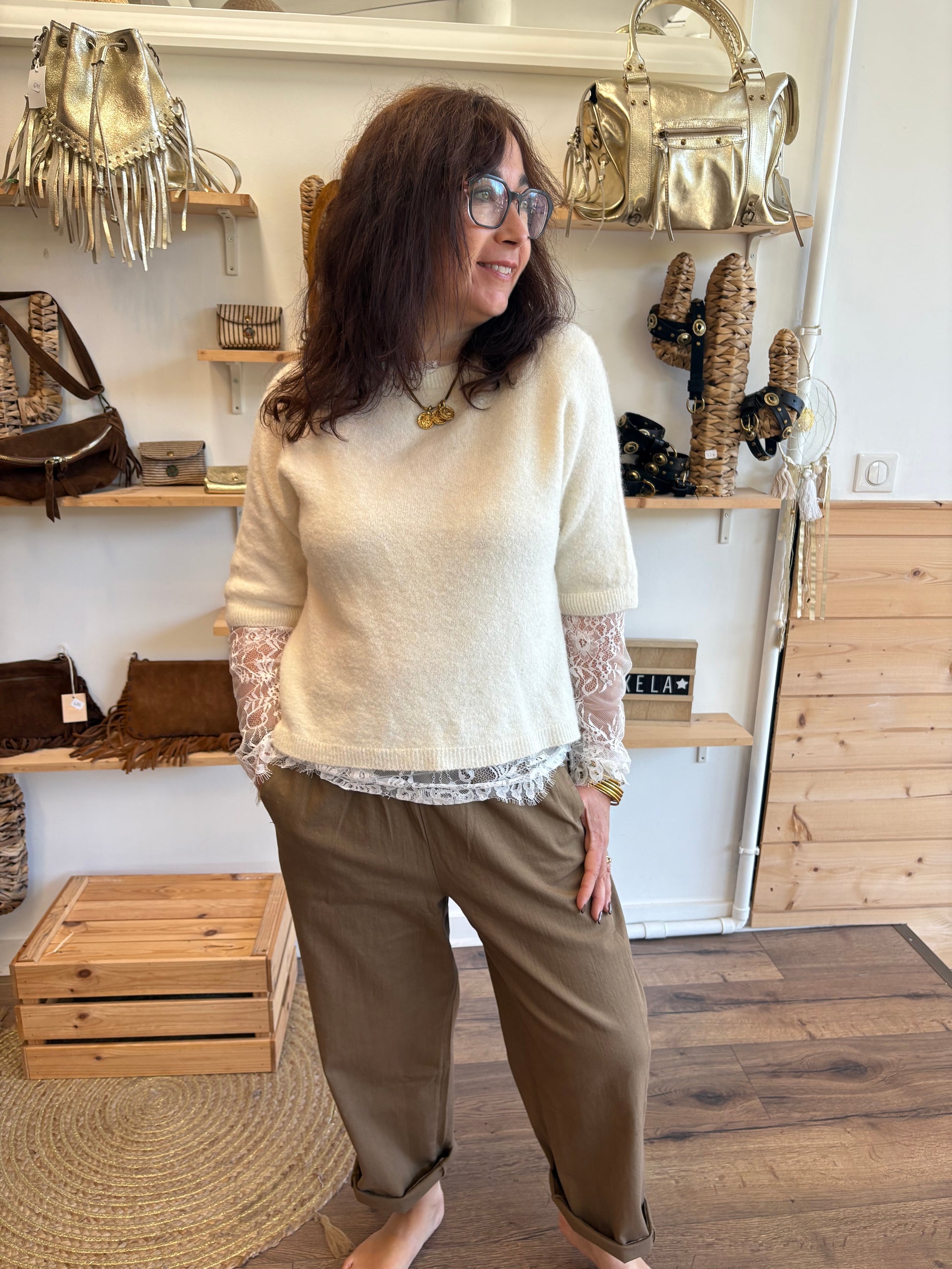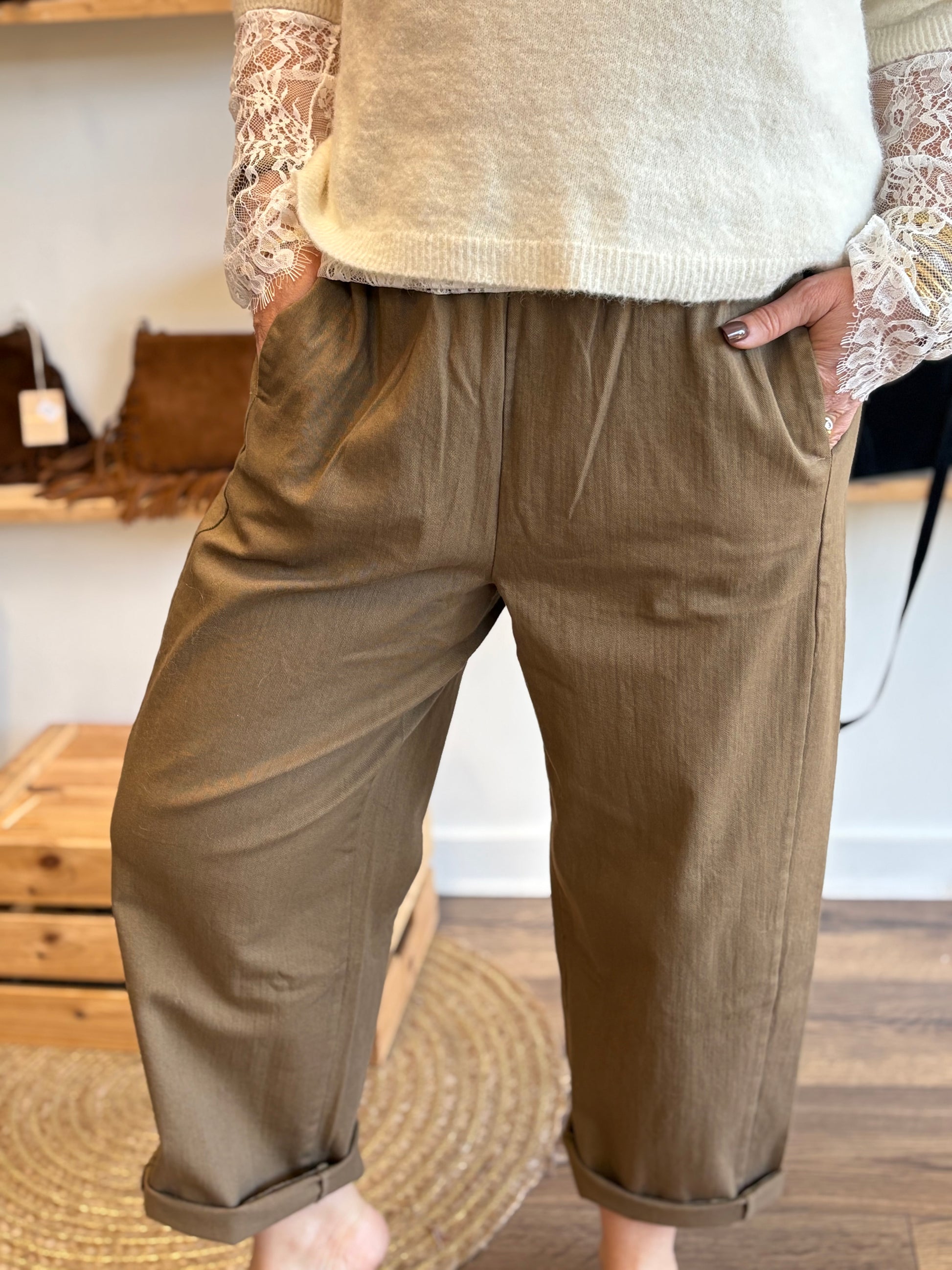 On retrouve tout ce qu’on avait adoré cet été : une coupe ultra confort, une taille élastique qui s’adapte à toutes les morphos et une matière 100% coton, plus épaisse et douce pour la saison.