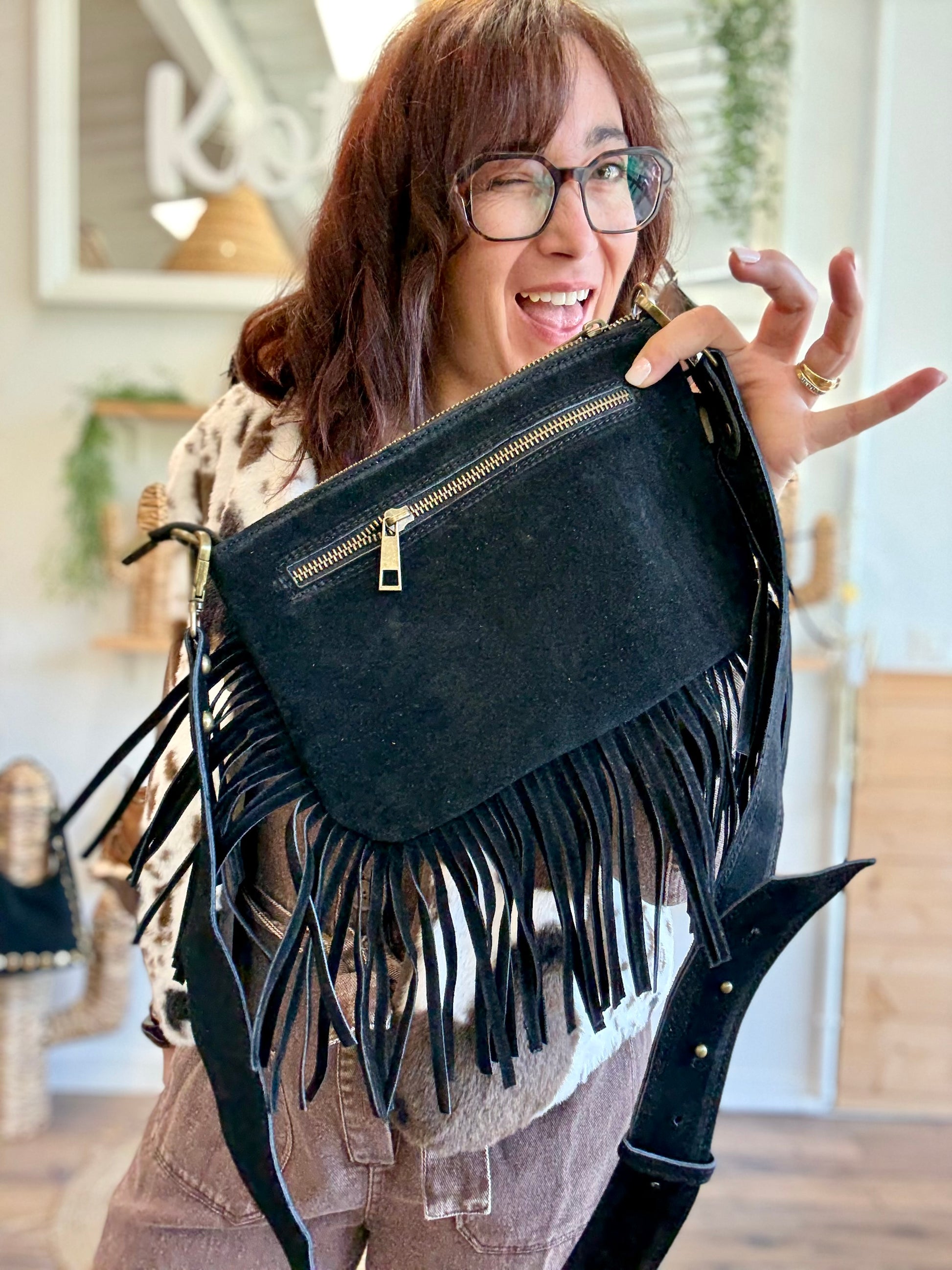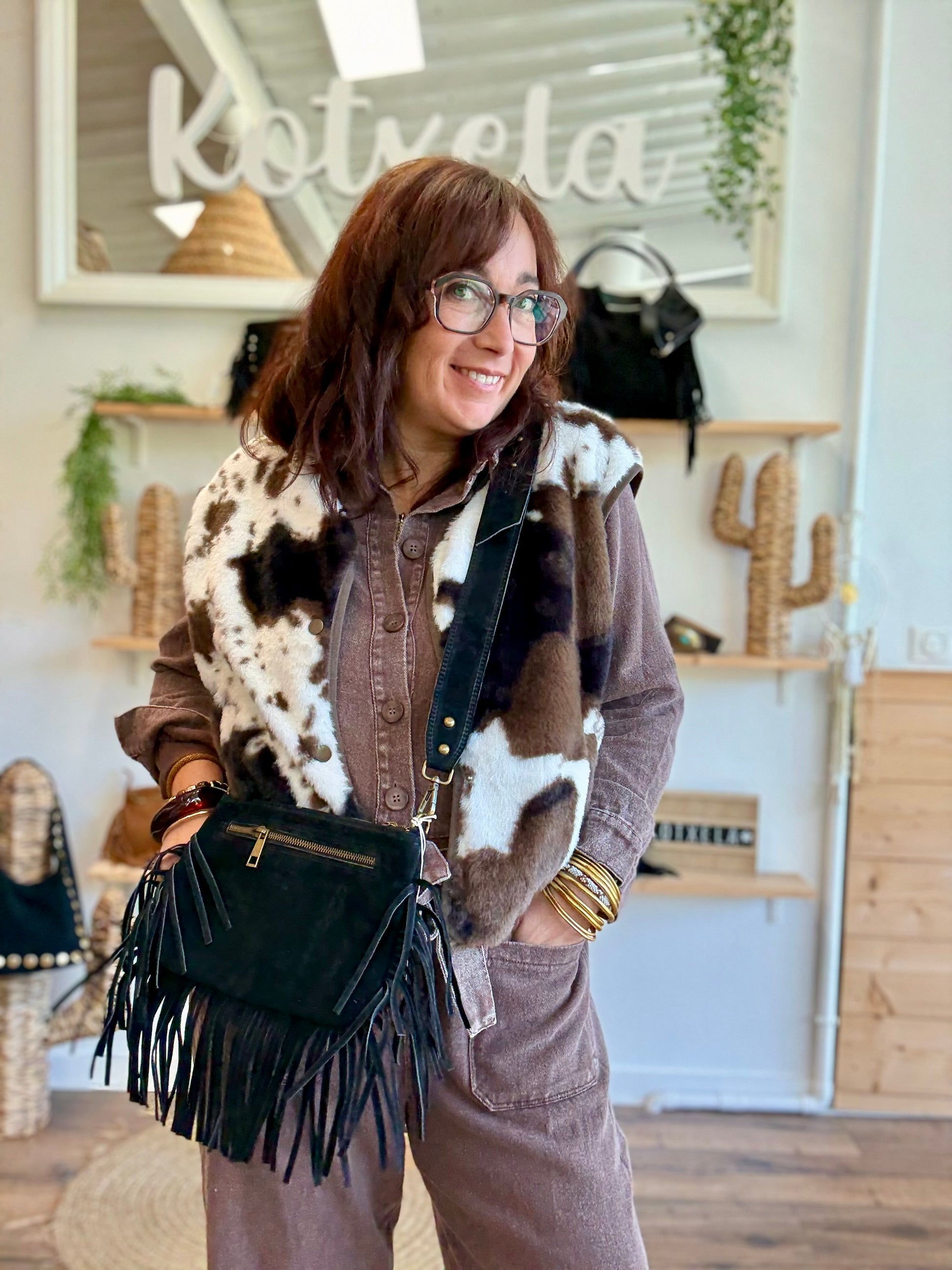 Sa suédine italienne ultra douce et ses franges dansantes lui donnent un style affirmé sans effort.