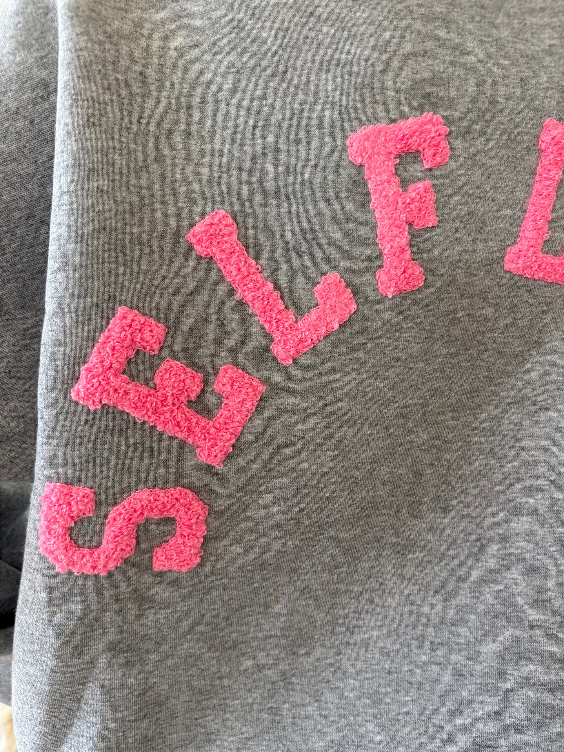 Avec son message SELF LOVE en lettres bouclette roses dans le dos, ce sweat célèbre l’amour de soi avec une touche fun et positive.