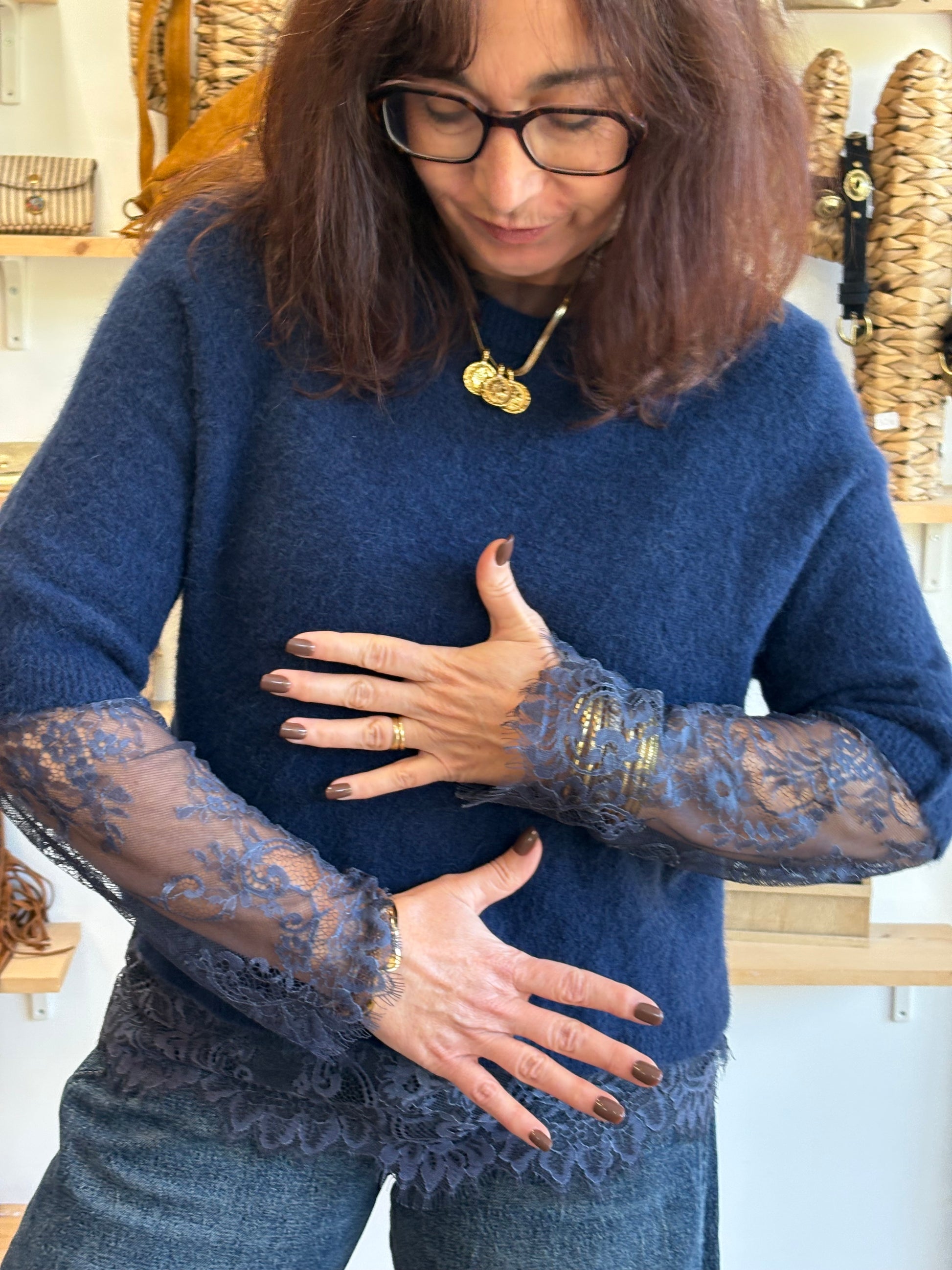 Tout en dentelle fine et délicate, ce top joue la carte de la transparence avec élégance. À glisser sous une maille douce ou un blazer, il sublime instantanément chaque look grâce à son effet seconde peau raffiné.