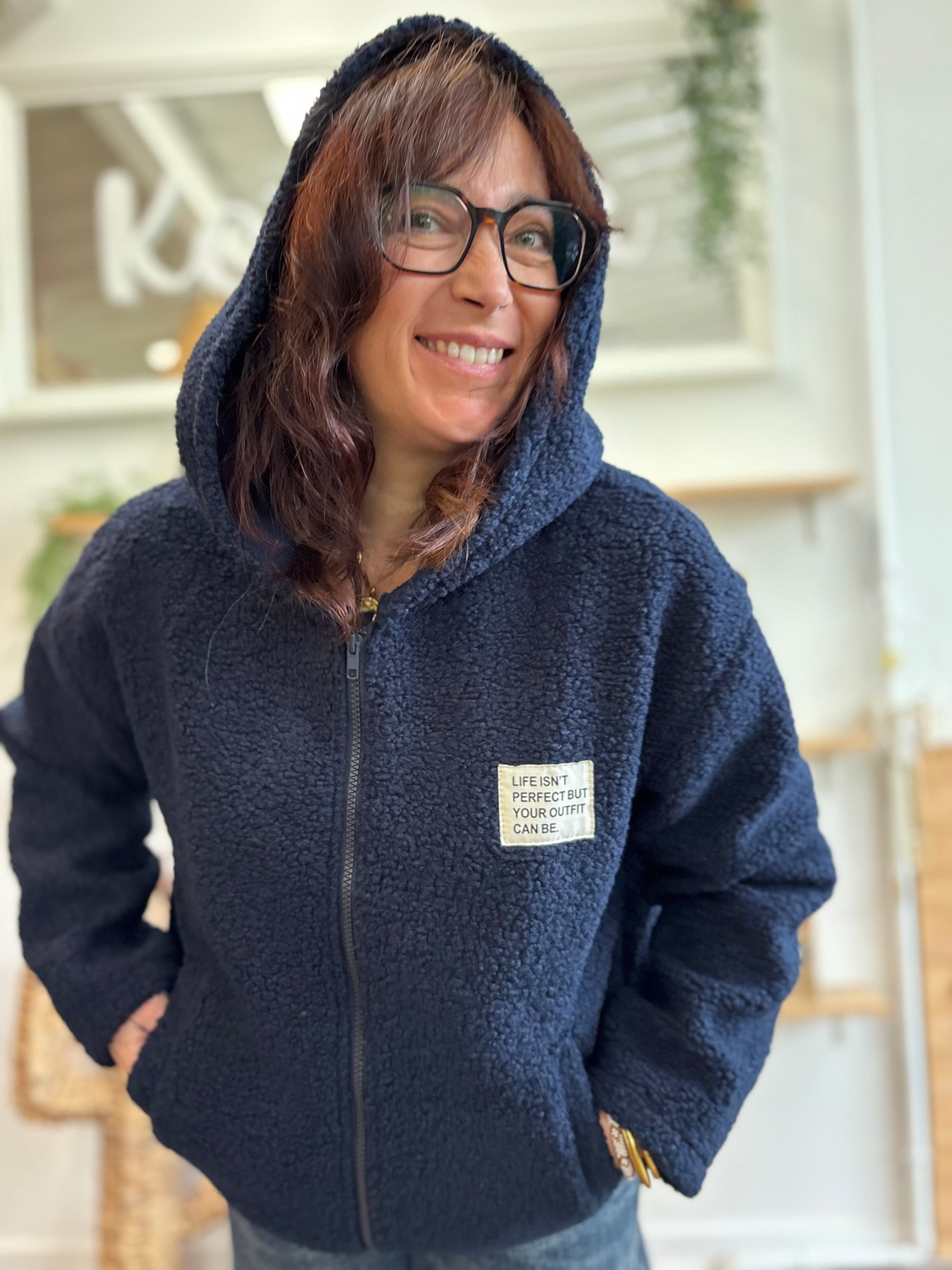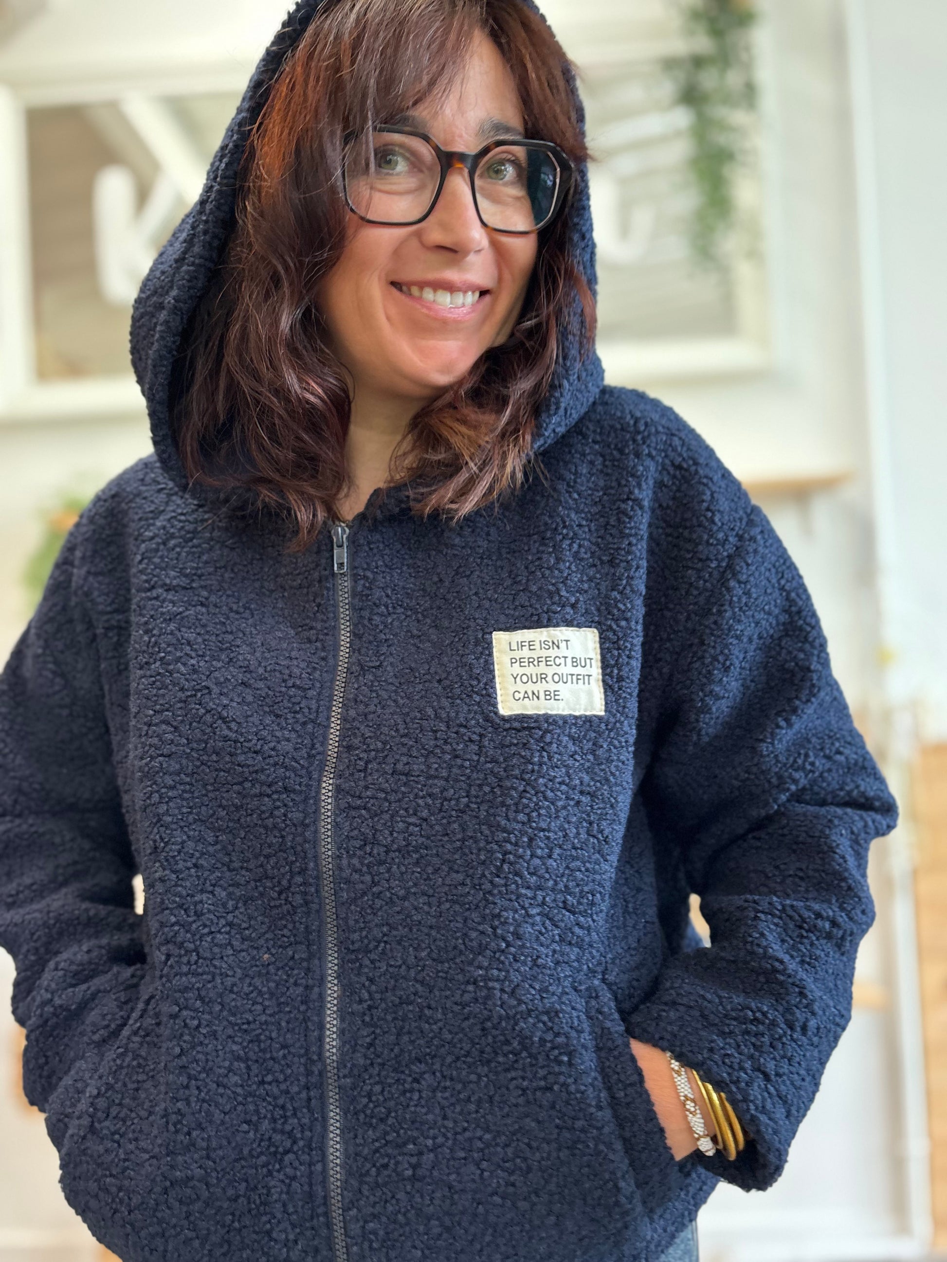 • Écusson brodé “Life isn’t perfect but your outfit can be”