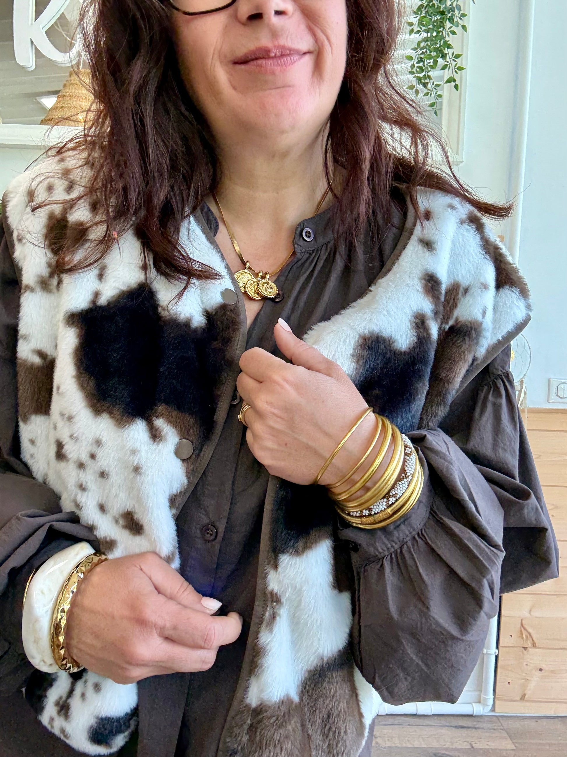 À glisser sur une chemise chocolat et un jean brut pour un look cowgirl urbain, ou sur une robe unie pour une touche décalée 100% Kotxela 🐮✨
