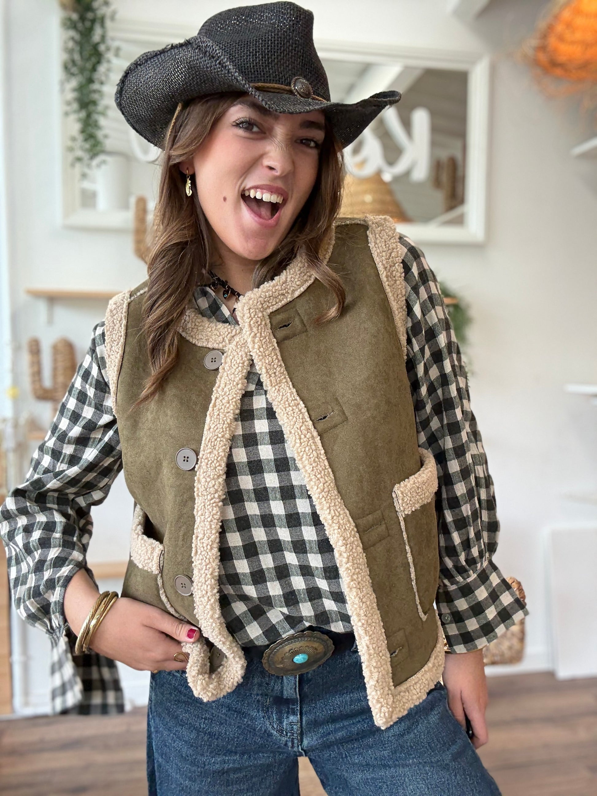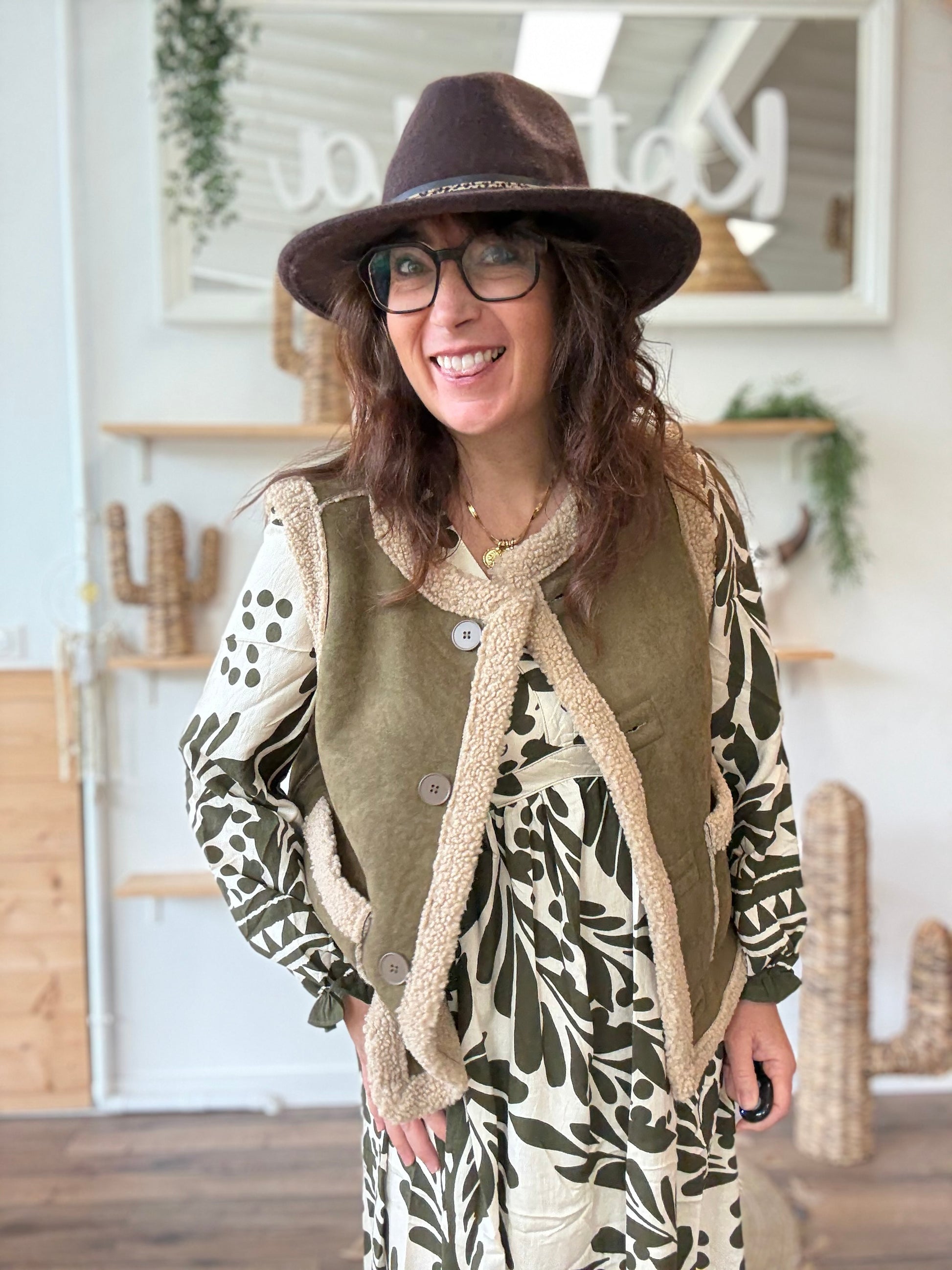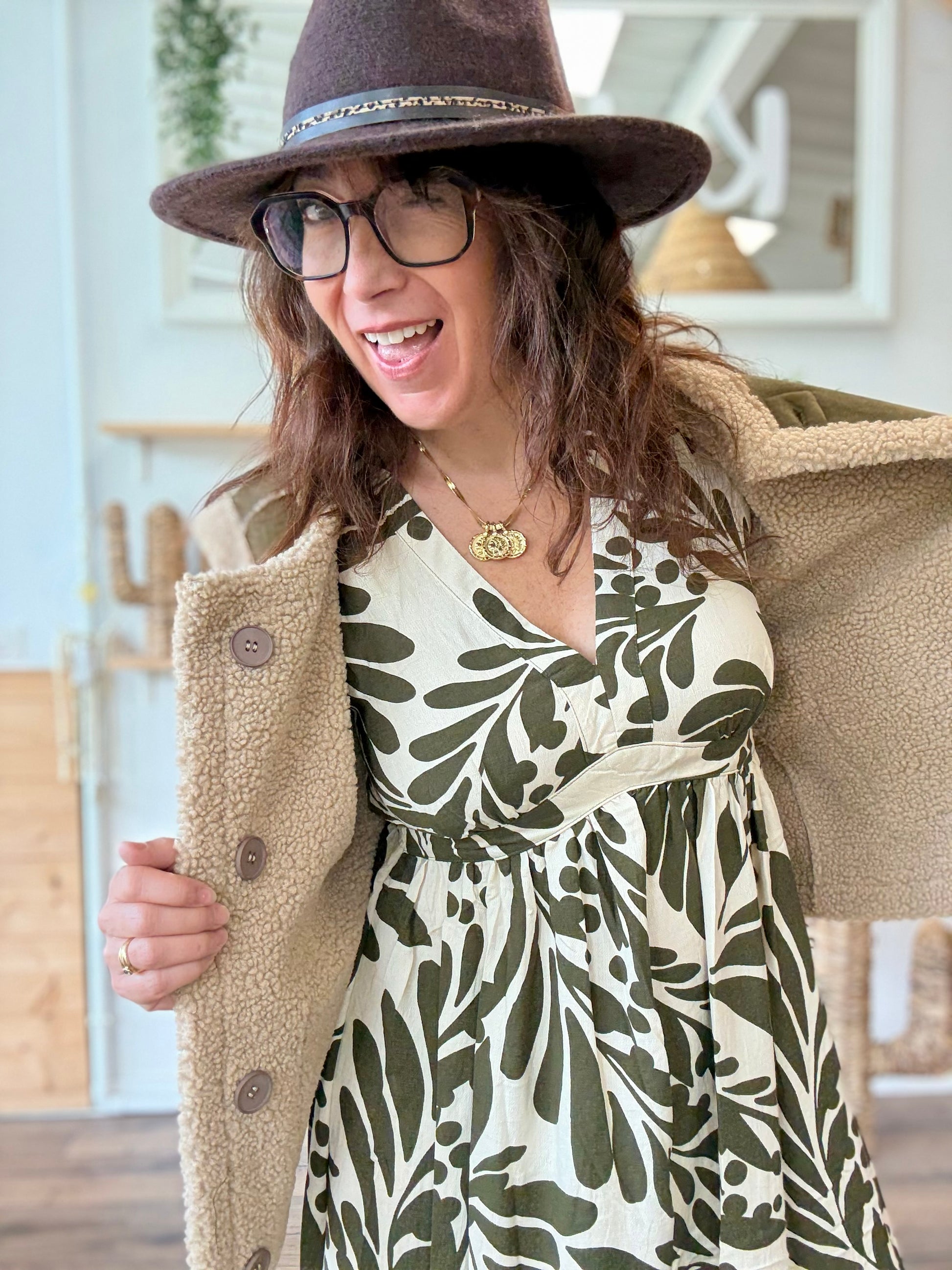 La pièce douillette qui réchauffe instantanément tes looks d’automne-hiver 🌿🤎. Avec son effet peau retournée et sa doublure sherpa, elle apporte une touche bohème et cosy, idéale sur une robe fluide ou un jean taille haute.