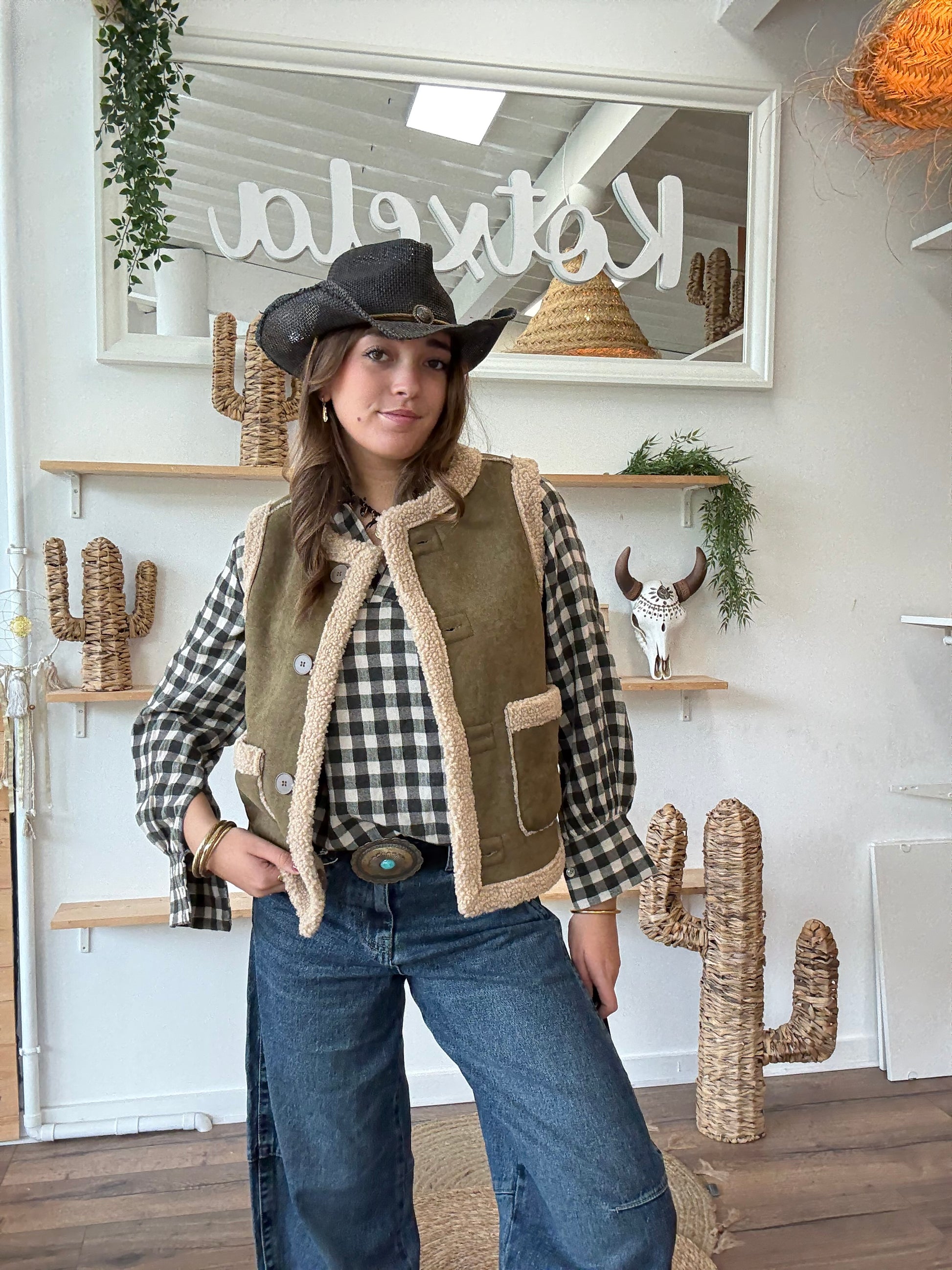 Associe-la à une robe imprimée et des bottes pour un esprit bohème folk, ou sur une chemise à carreaux et un jean barrel pour un look cowgirl revisité. 🤠✨
